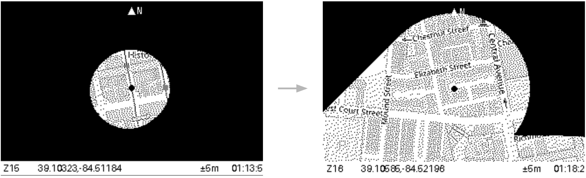 i started with a simple interface focused on exploration: you see your location, can zoom, and only areas you’ve visited are visible. blacked out zones encourage curiosity, and limited information sharpens navigation by requiring you to choose your own route.
